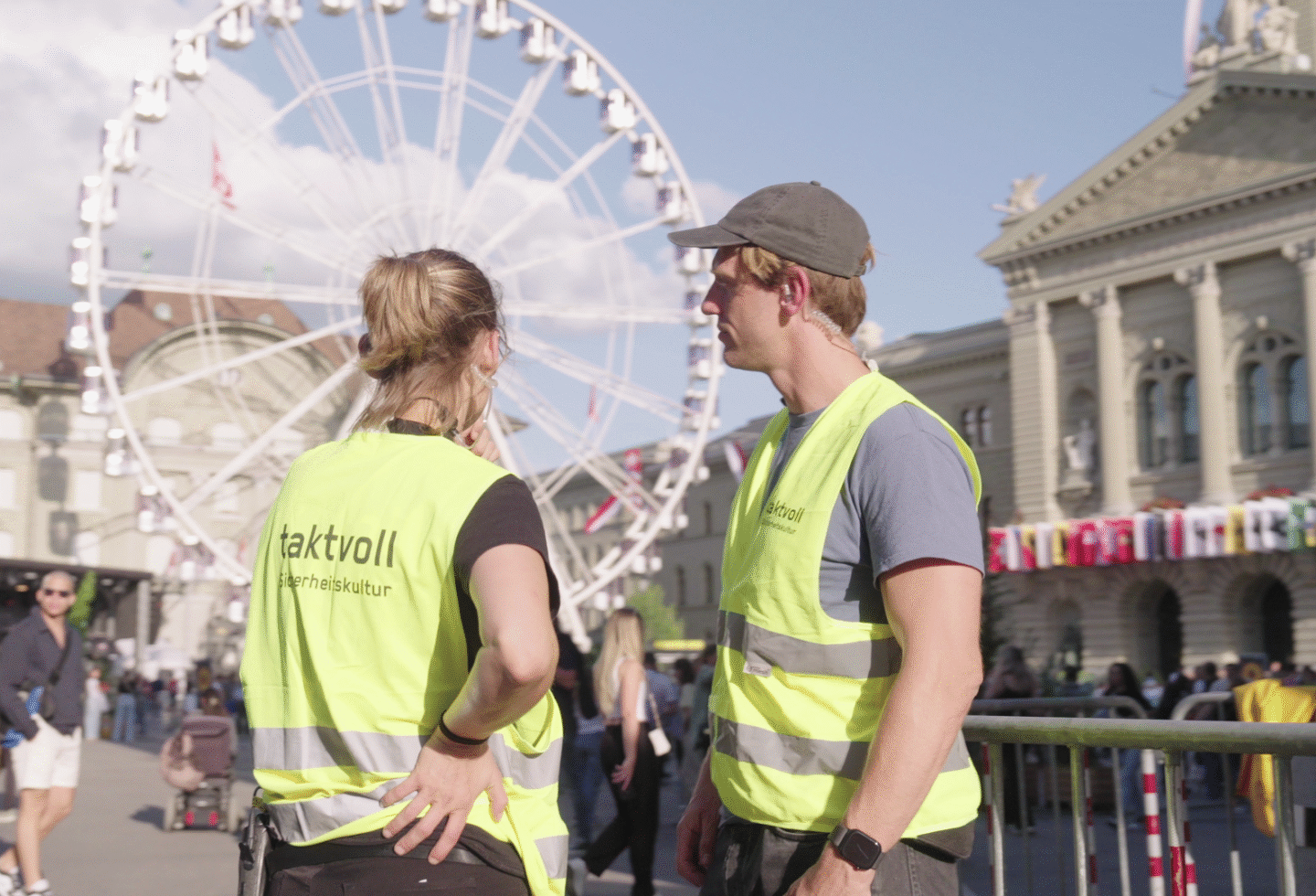 taktvoll gewährleistet Sicherheit. Dazu setzt taktvoll Menschen ins Zentrum und begleitet Veranstaltende im Nacht- und Kulturleben sowie soziale Institutionen dabei, eine Sicherheitskultur auf Augenhöhe zu etablieren. taktvoll agiert präventiv und interveniert in Krisensituationen – professionell, deeskalierend und diskriminierungssensibel. Ob Konfliktsituationen in sozialen Einrichtungen oder Brennpunkte im Nacht- und Kulturleben – taktvoll begegnet den Herausforderungen mit Sicherheitskonzepten, die im engen Austausch mit den vielfältigen Auftraggebenden entwickelt werden.